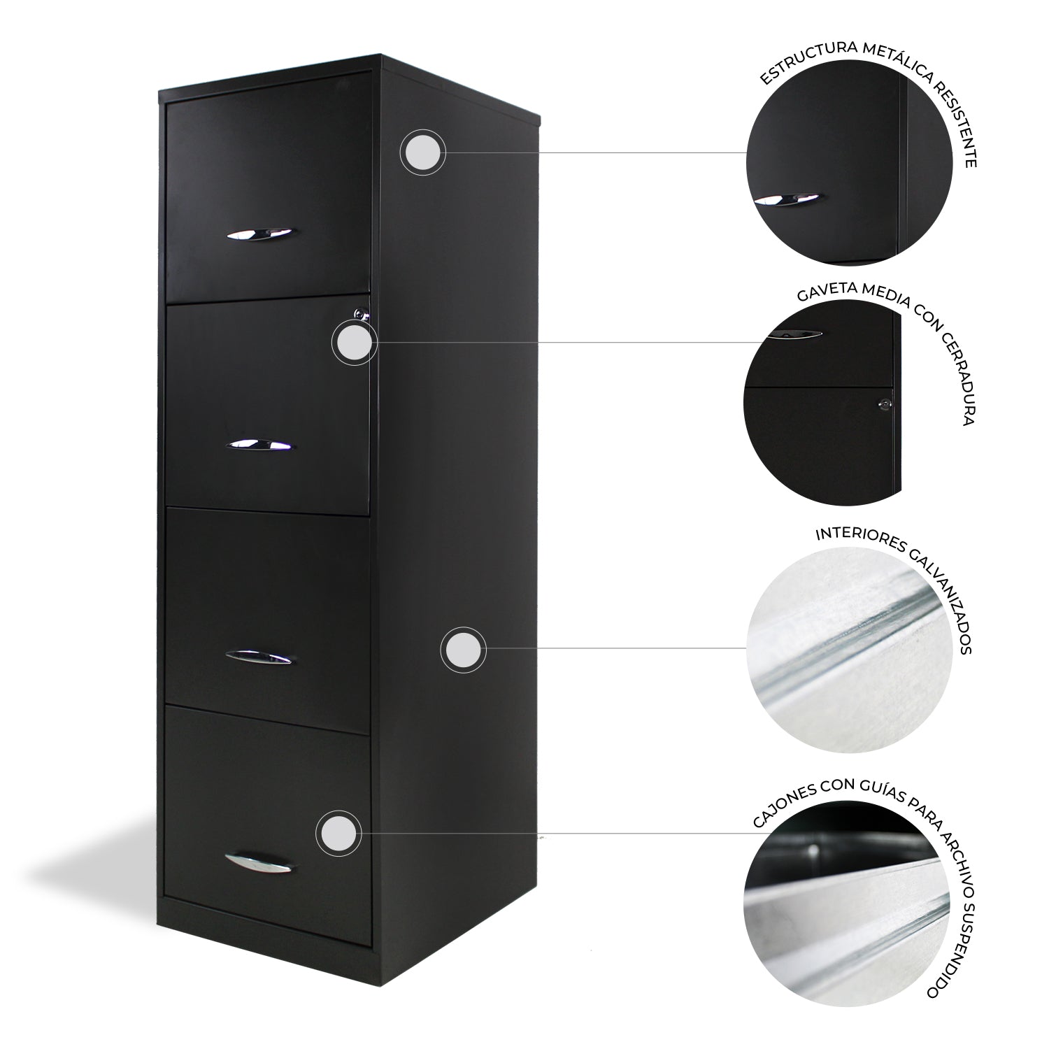 Potencia el orden y la seguridad de tu entorno laboral con este archivero de gran capacidad y diseño profesional. Su estructura metálica y cuatro cajones con guías permiten una organización eficiente, mientras que la cerradura en el segundo nivel protege documentos clave. Es una opción ideal para áreas administrativas que requieren resistencia y funcionalidad a largo plazo.