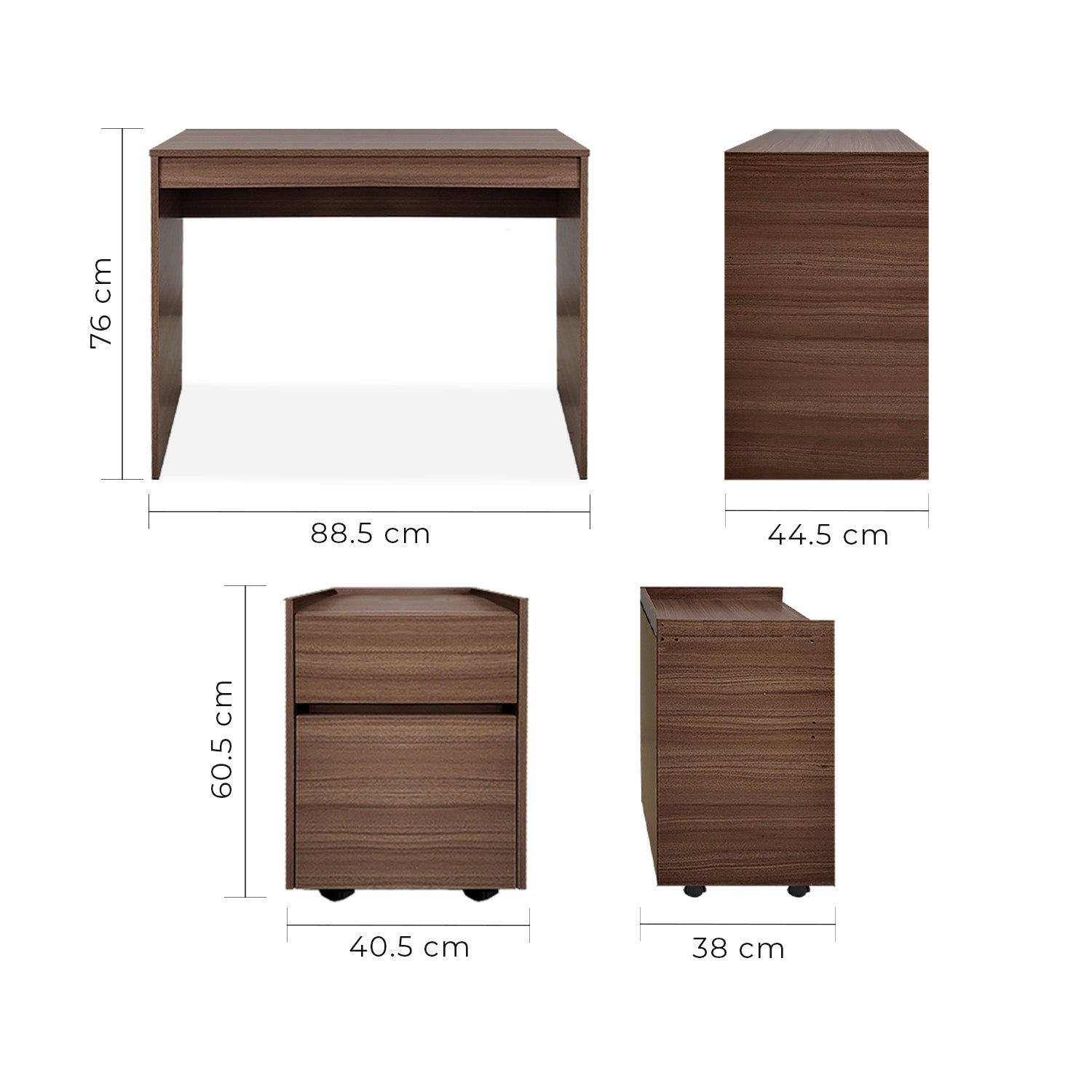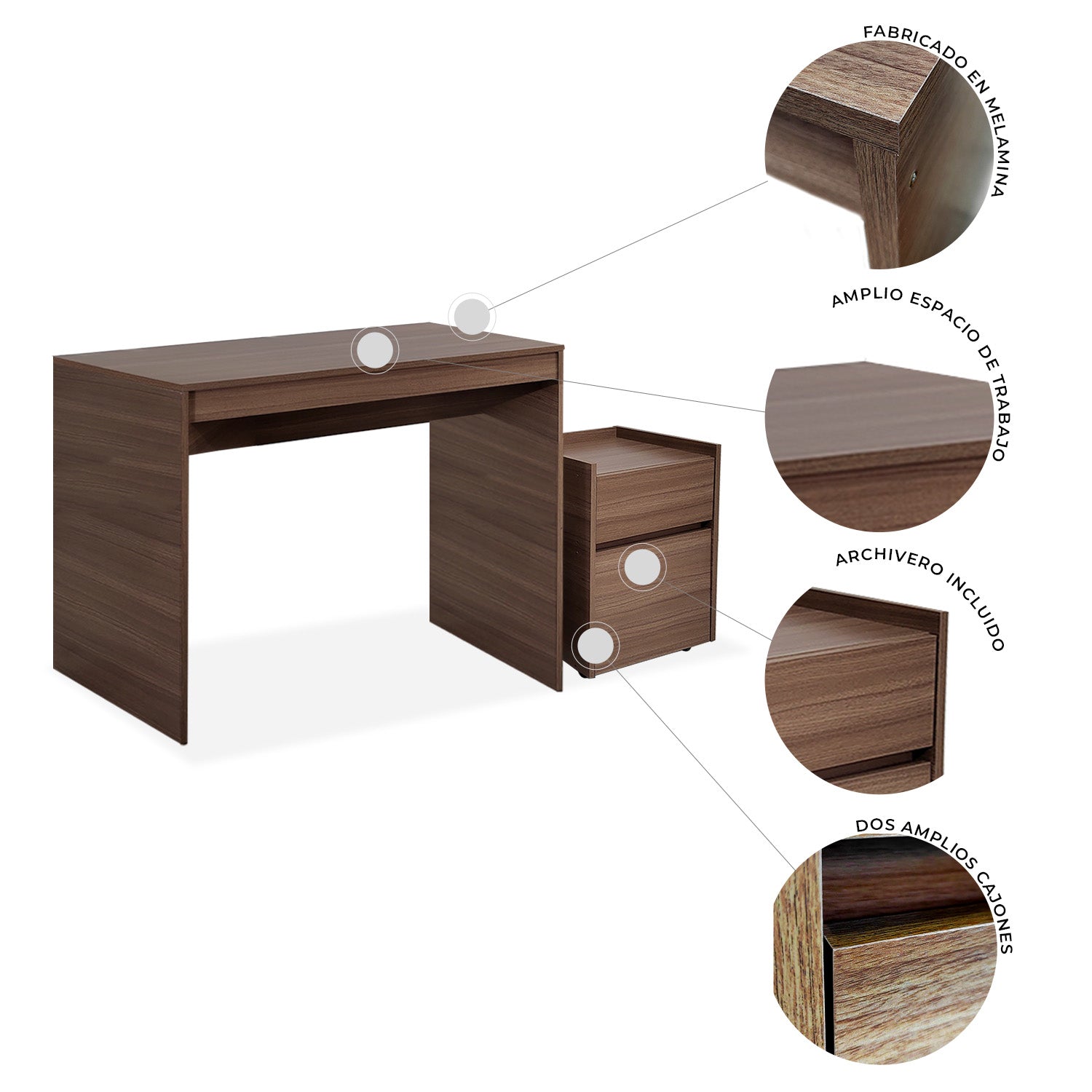 Fabricado en madera, cuenta con una amplio espacio de trabajo con un archivero extra