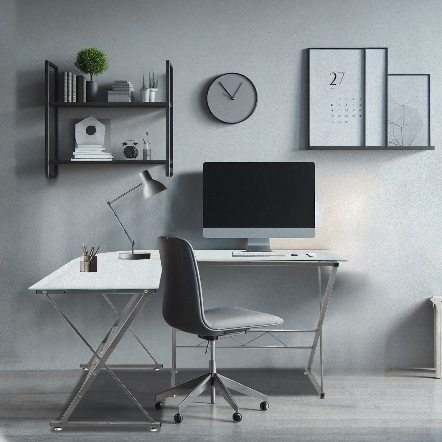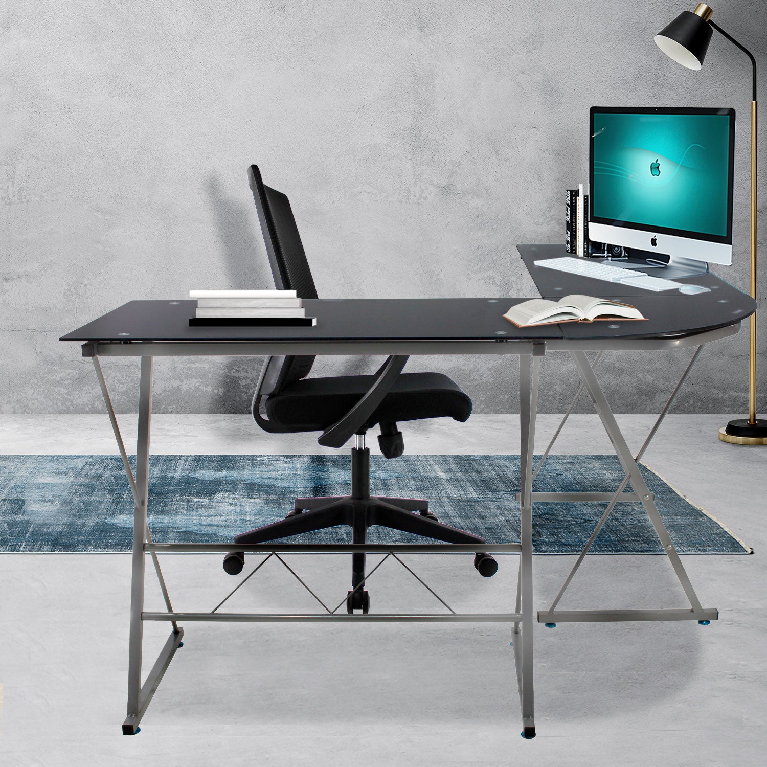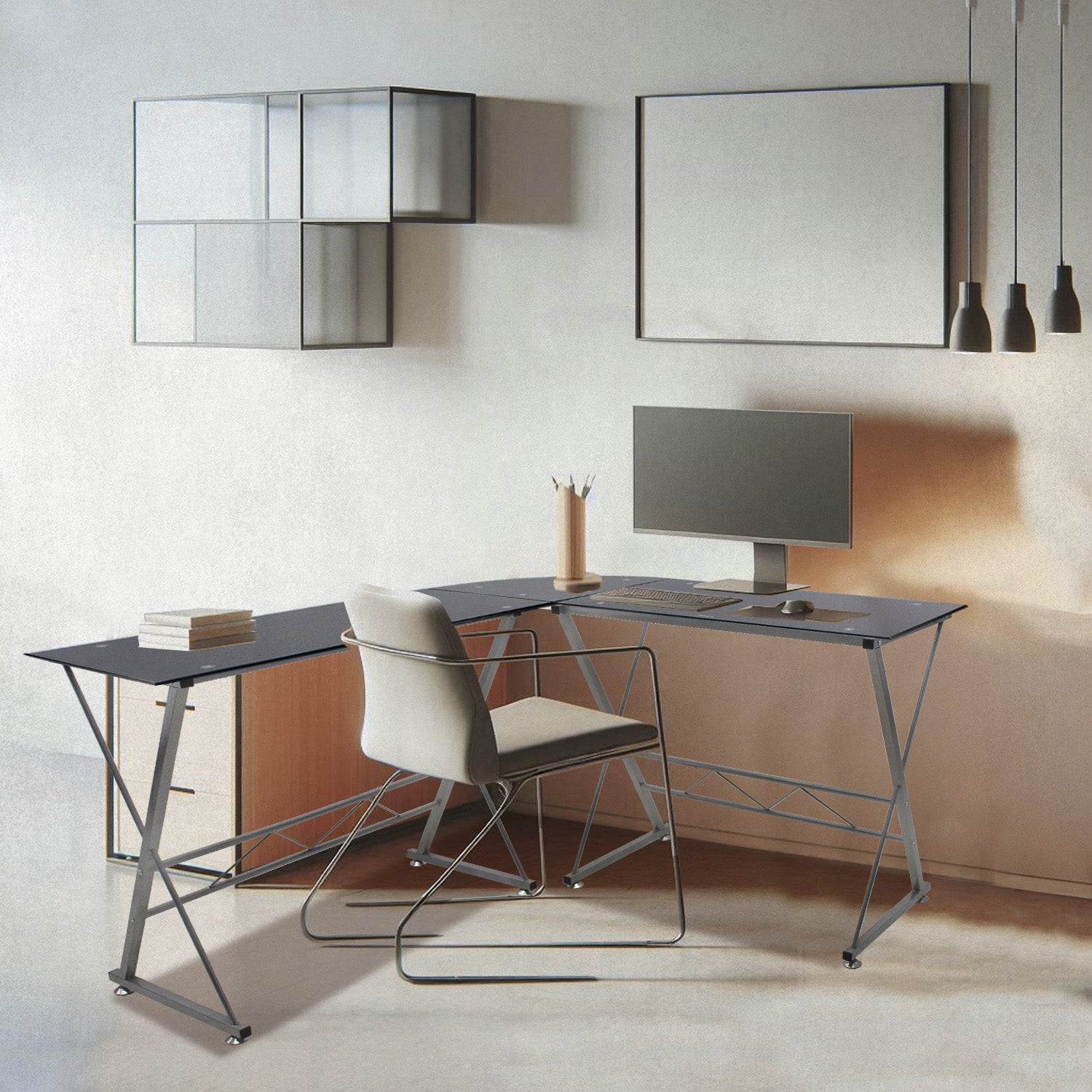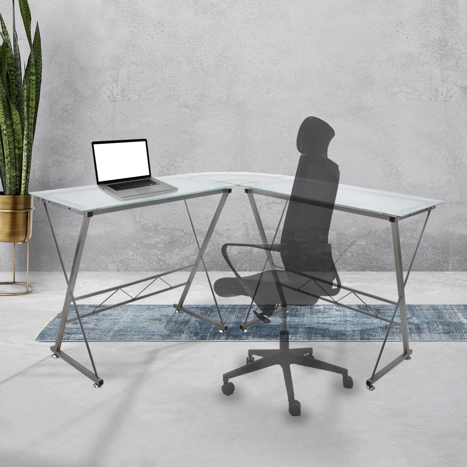 Fabricado en vidrio esmerilado o templado tipo “L”, cuenta con una estructura metálica