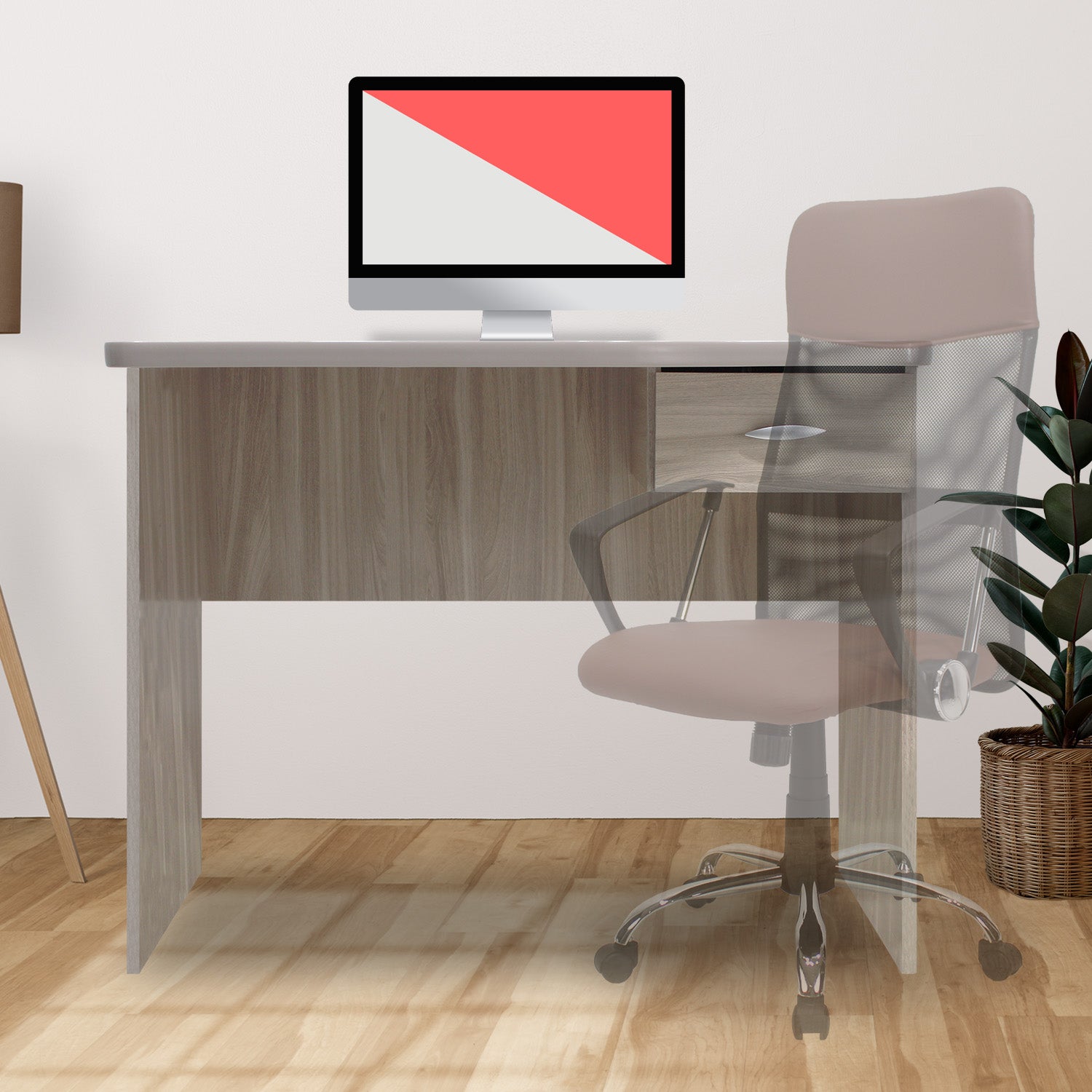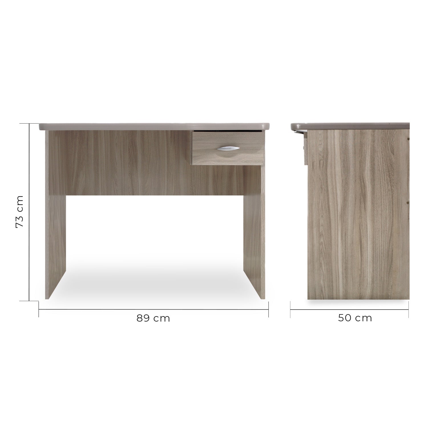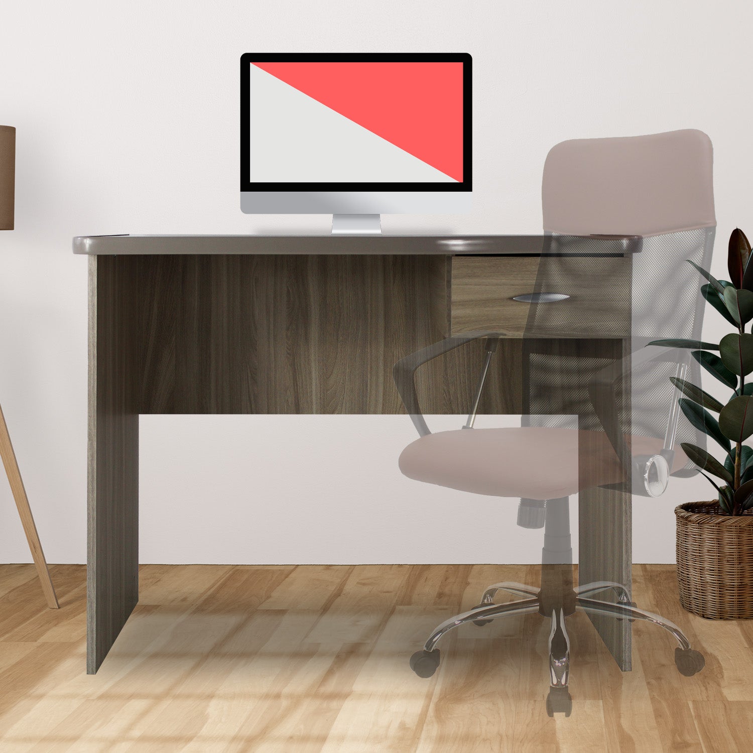 Fabricado en madera, cuenta con bordes redondeados en su espacio de trabajo, detallado con un marco de hule, y una área de almacenamiento tipo cajón