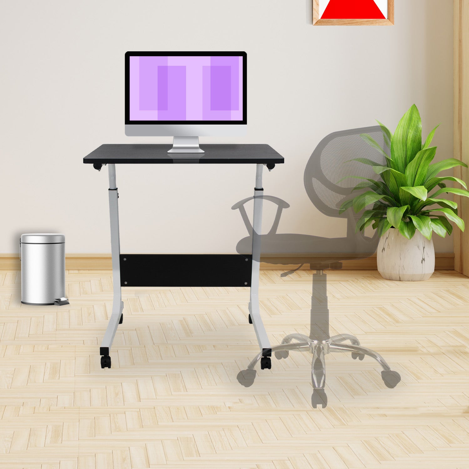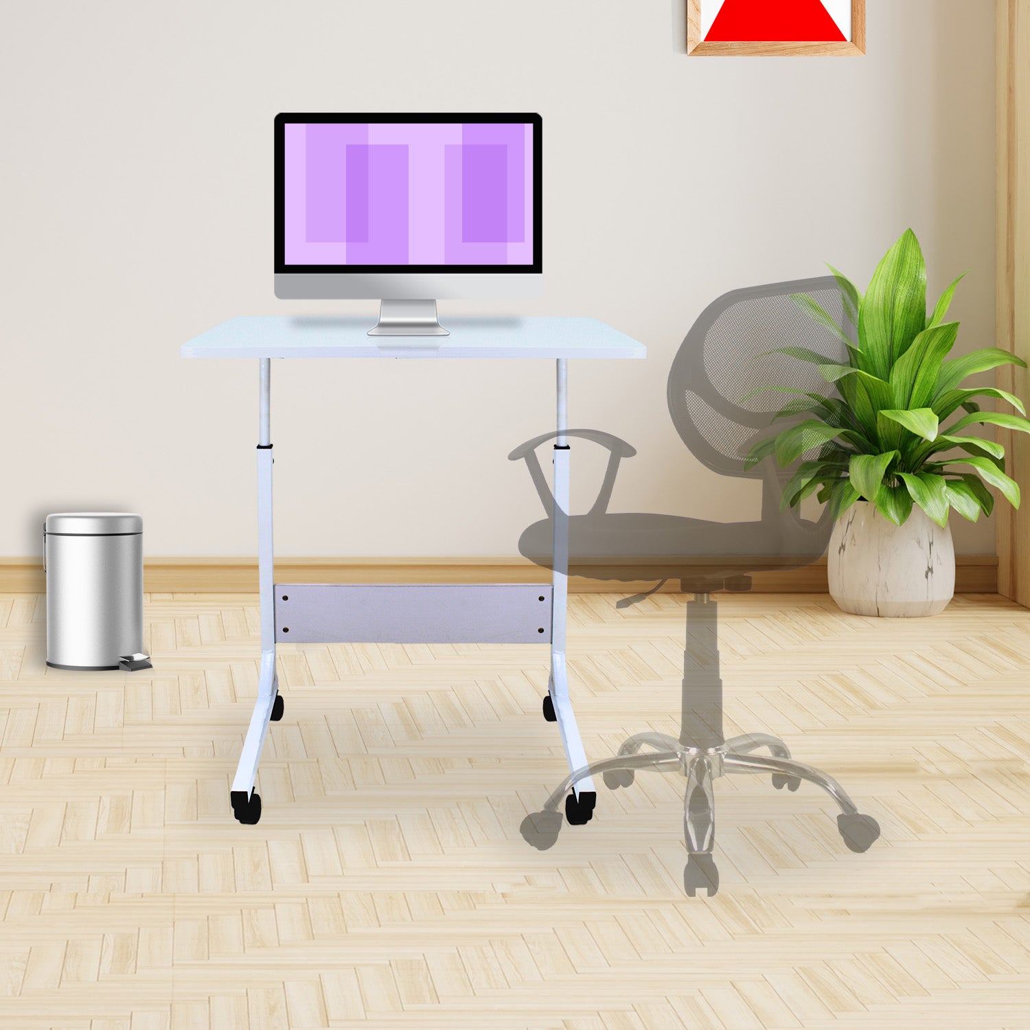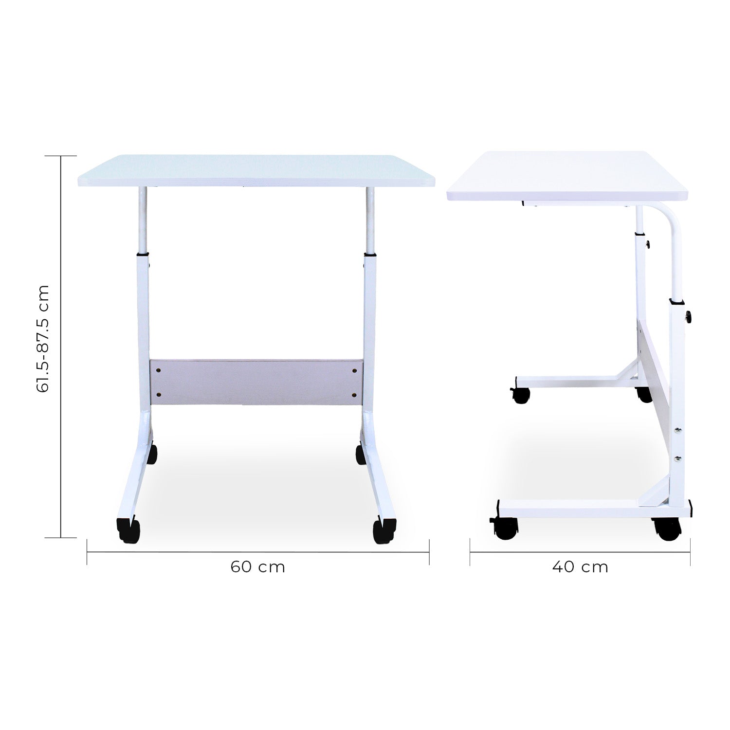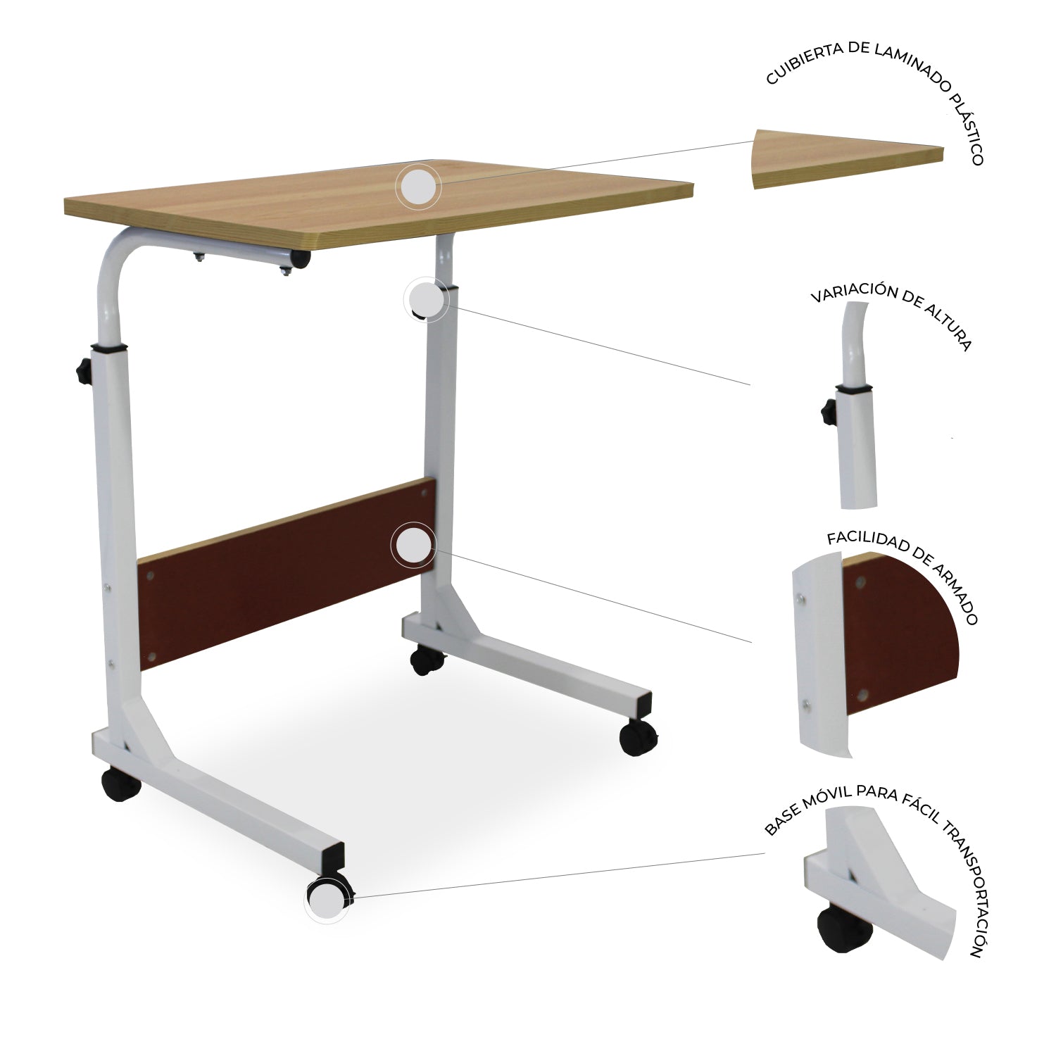 De estilo industrial, compuesto por una estructura tubular móvil color blanco con una eficiente área de trabajo