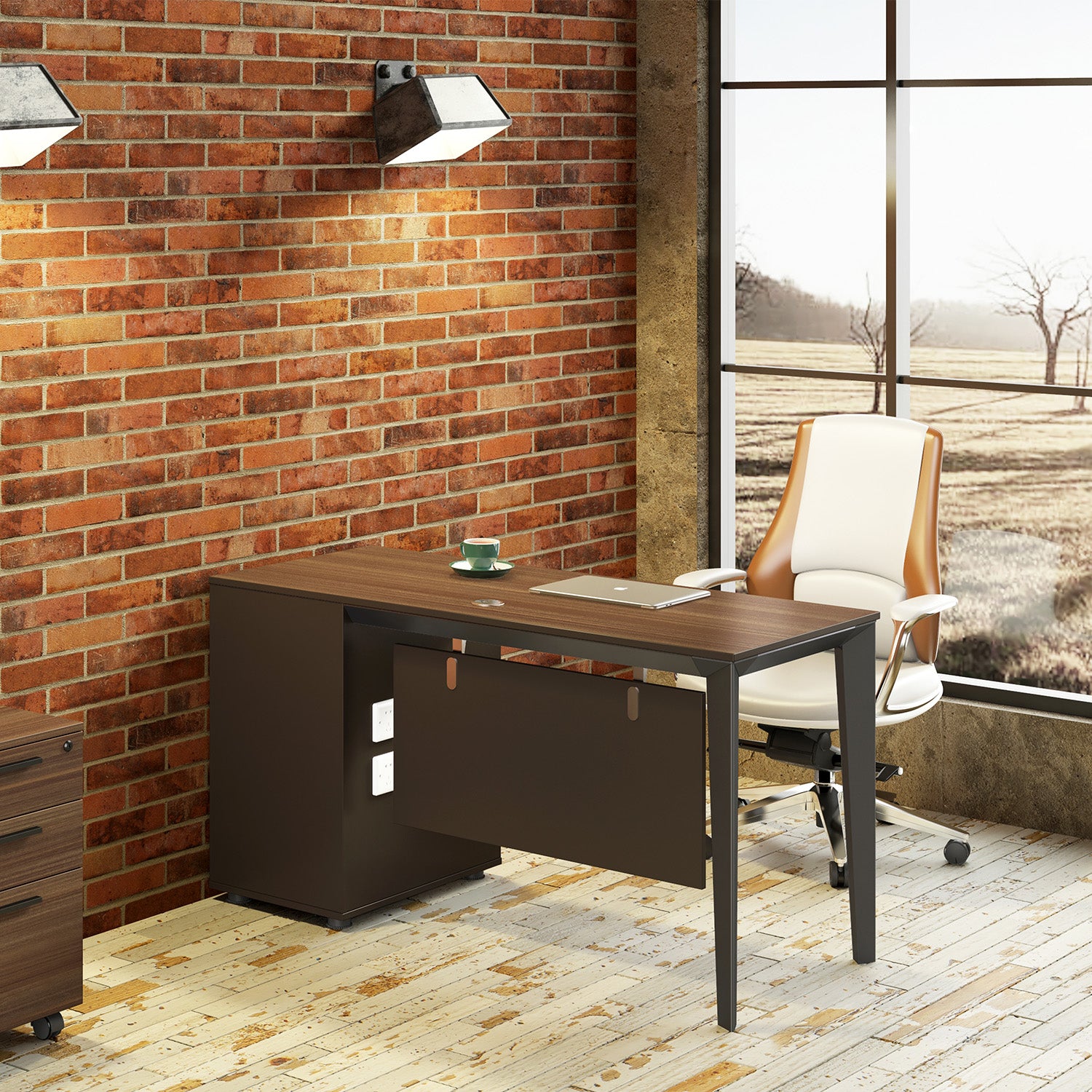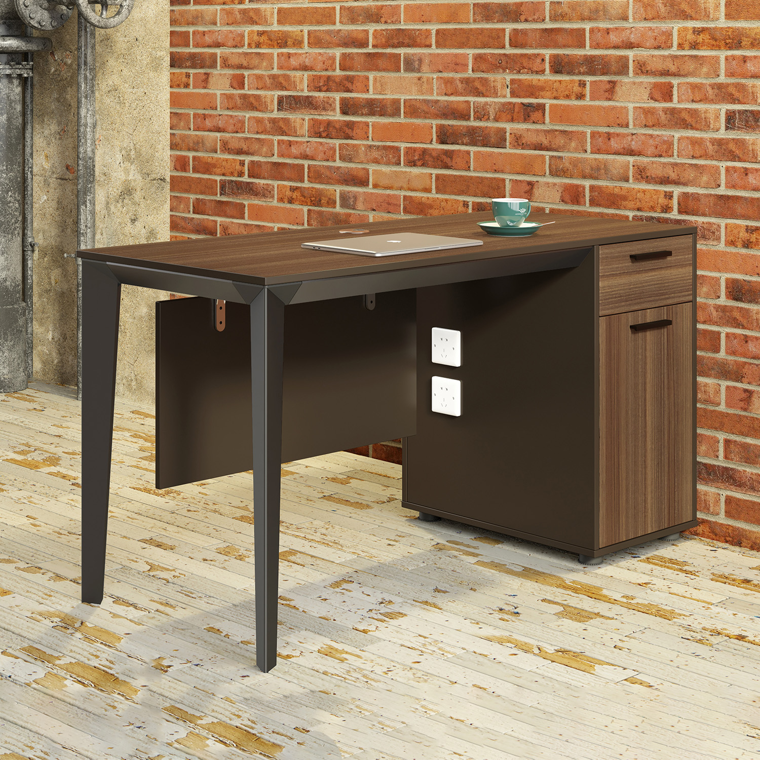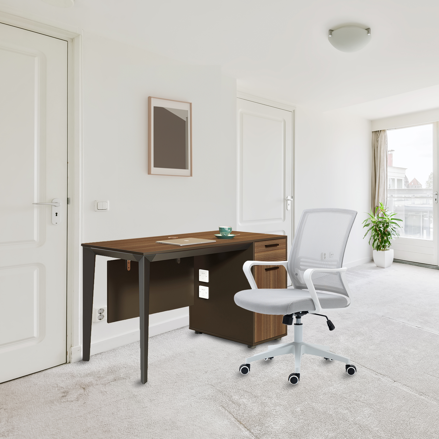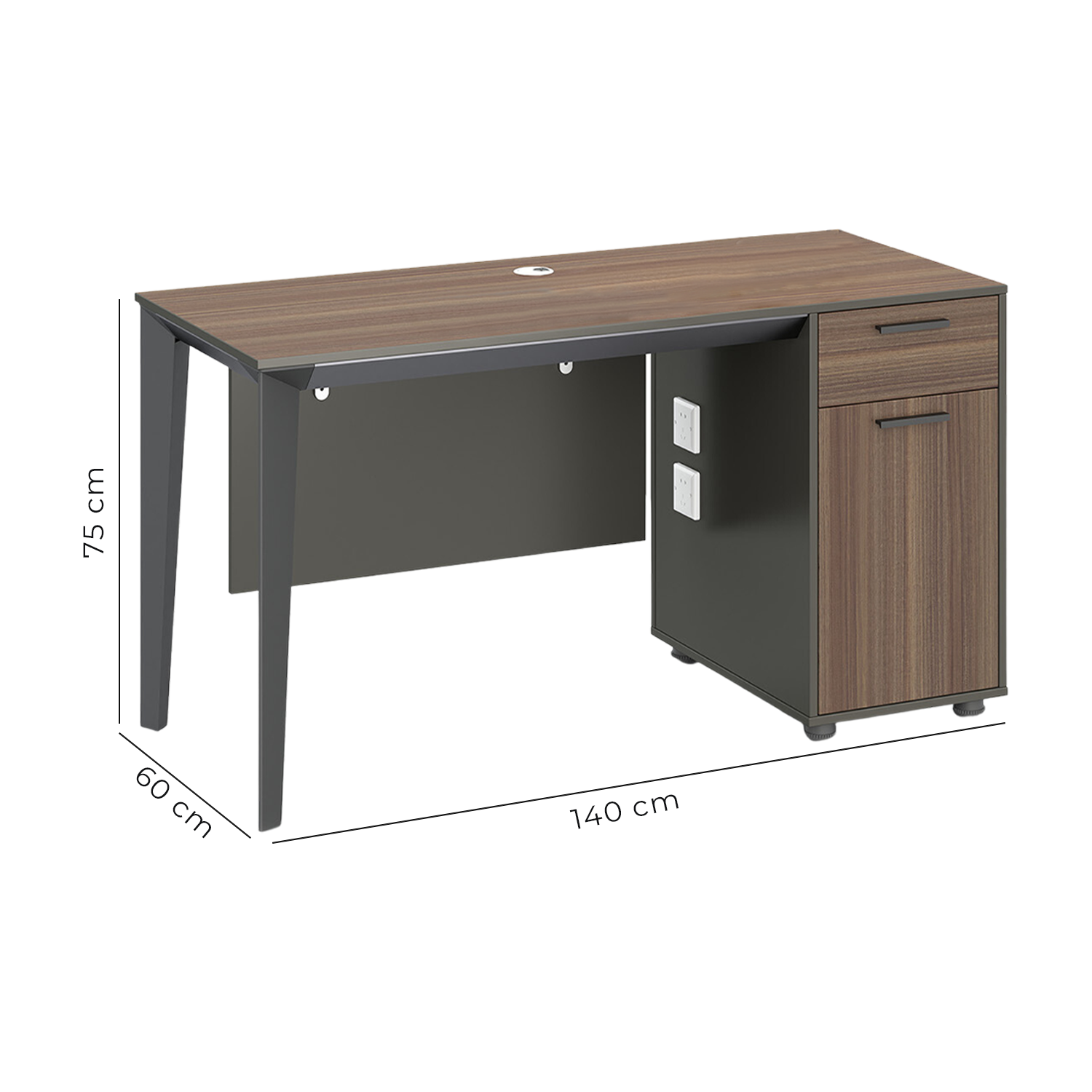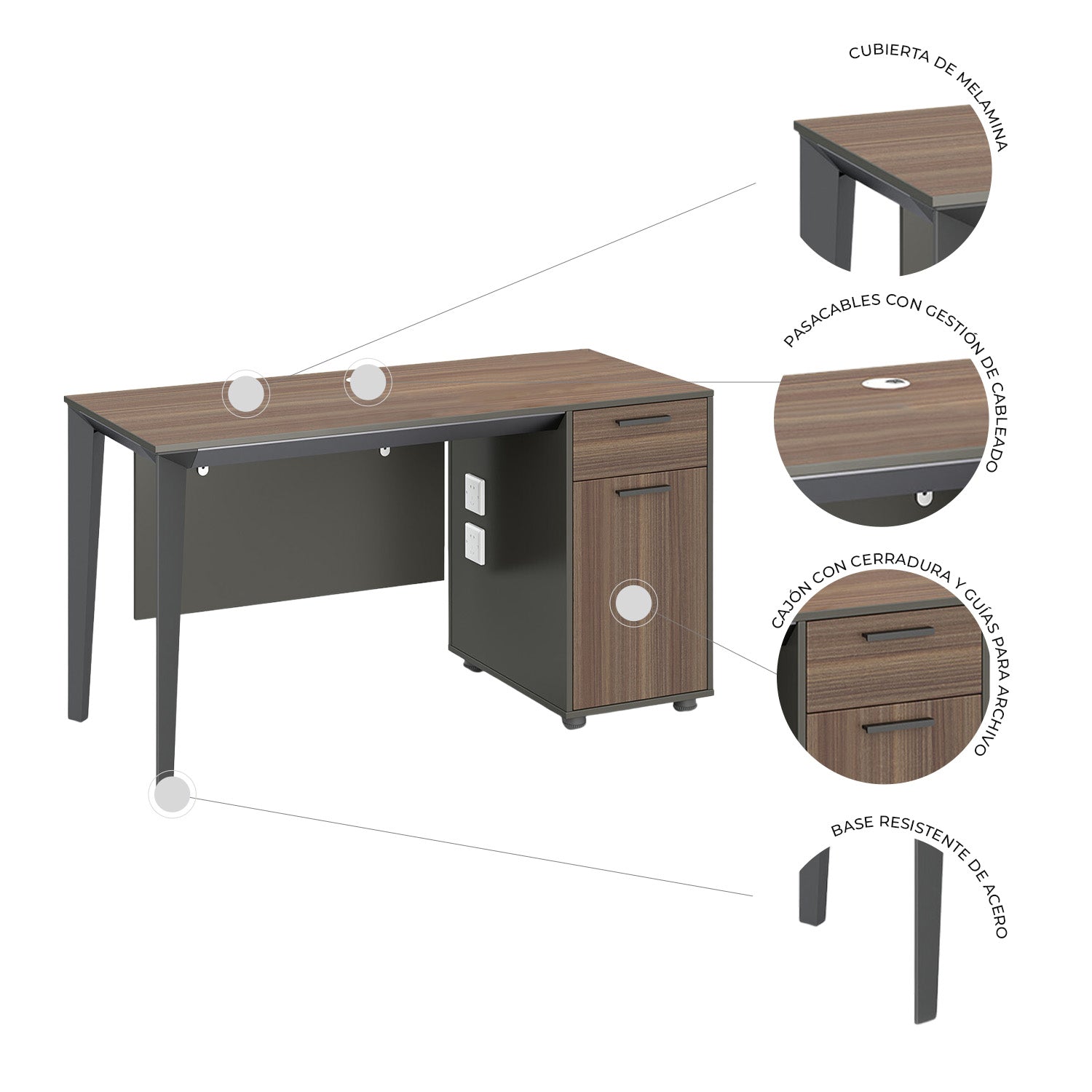 Fabricado en madera, cuenta con un amplio espacio de trabajo, un espacio de almacenamiento tipo cajón