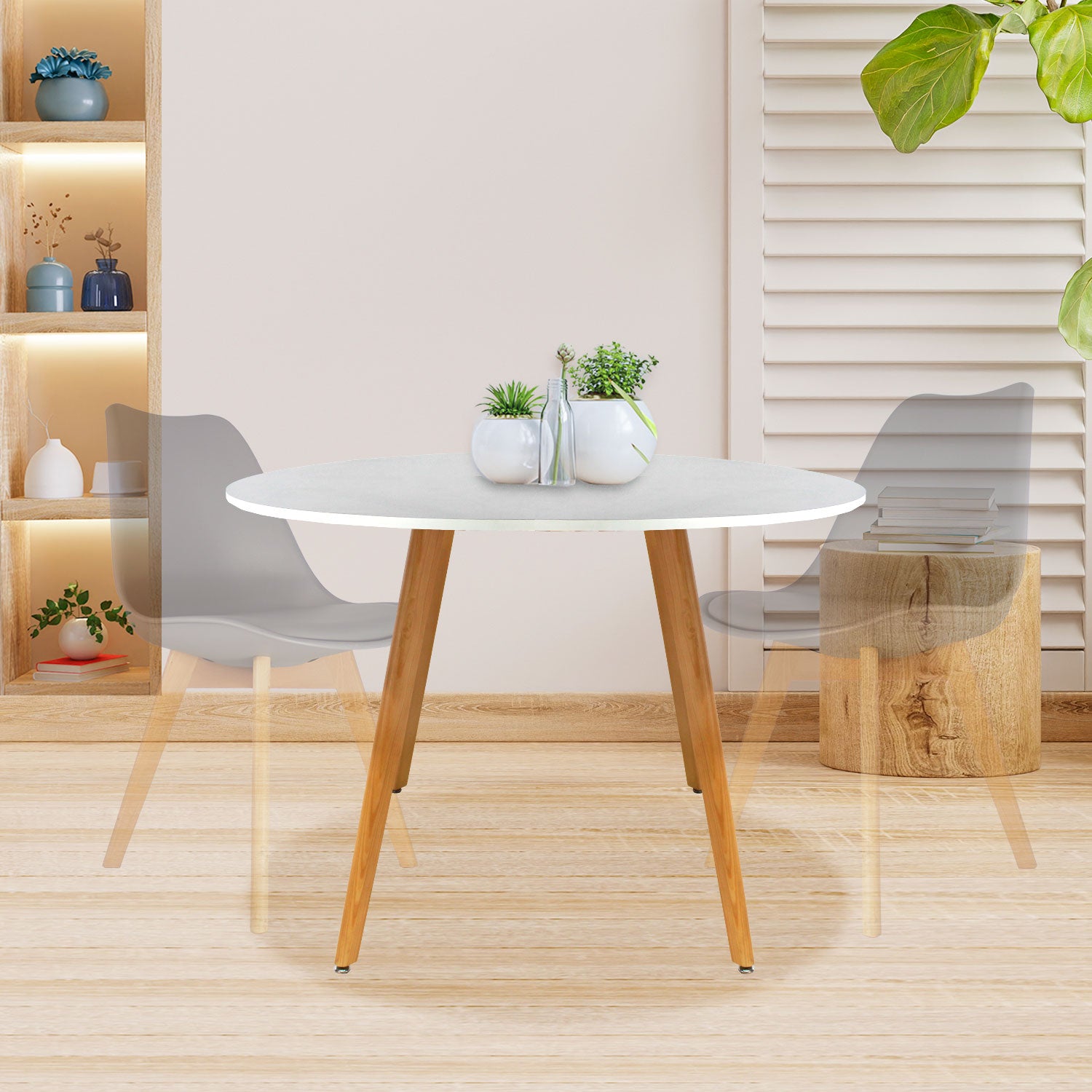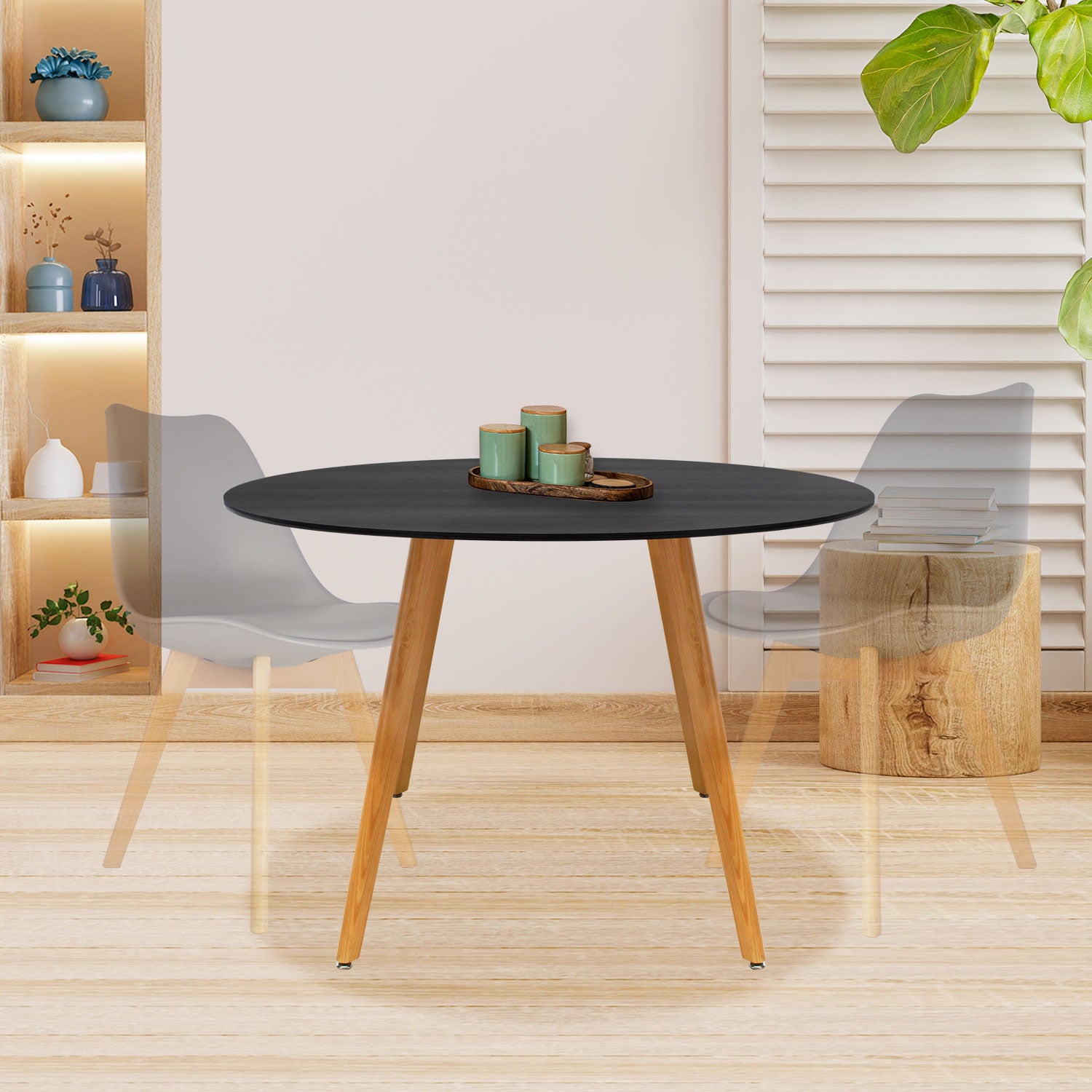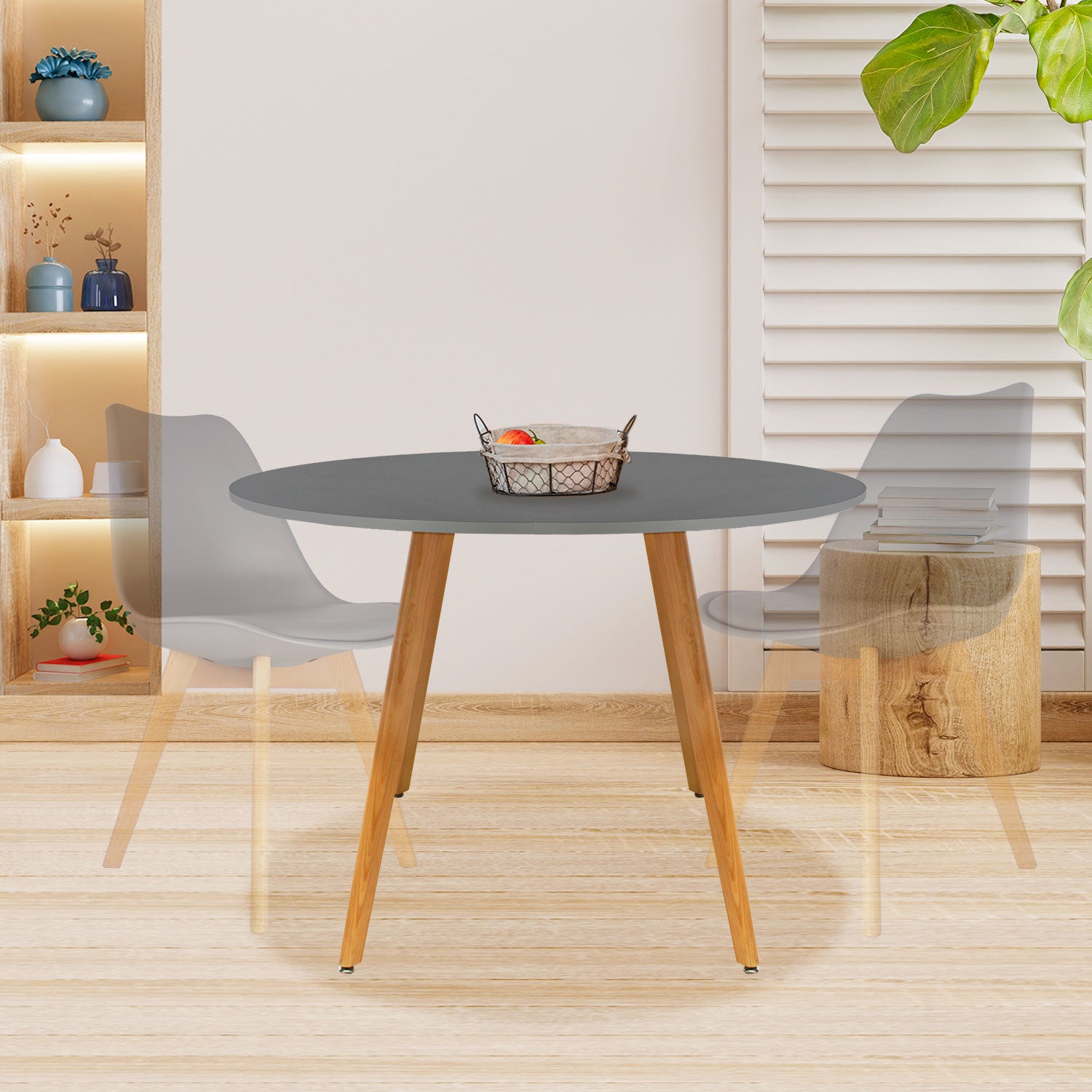 Fabricado en madera, cuenta con una superficie circular, con un soporte de piezas inclinadas