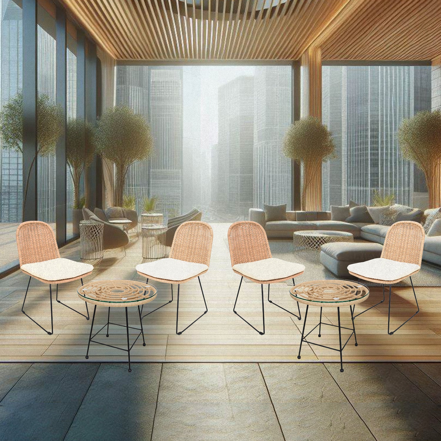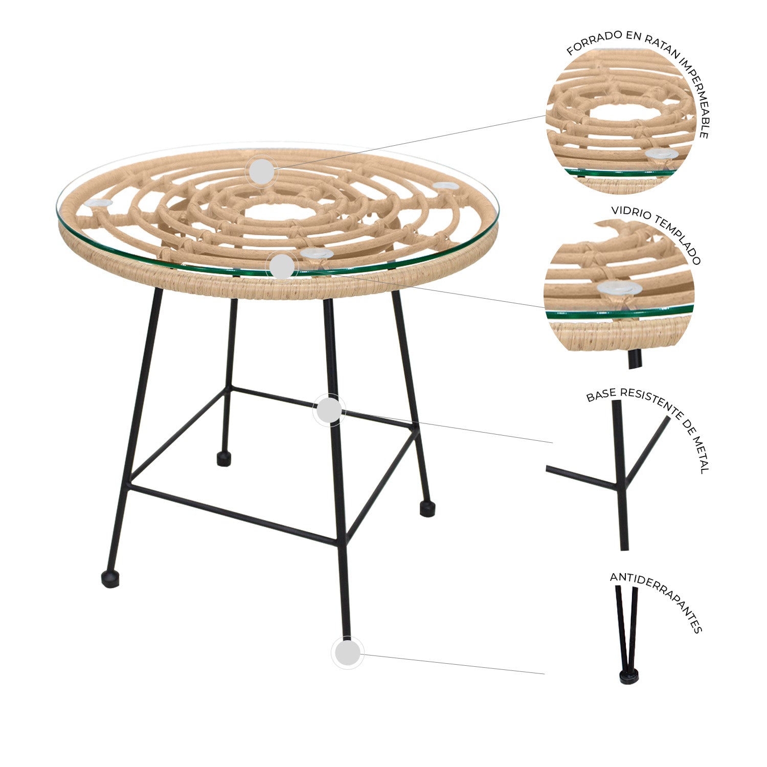 Mesa de exterior con base metálica de 1/2", antiderrapantes y tejido de rattan sintético impermeable