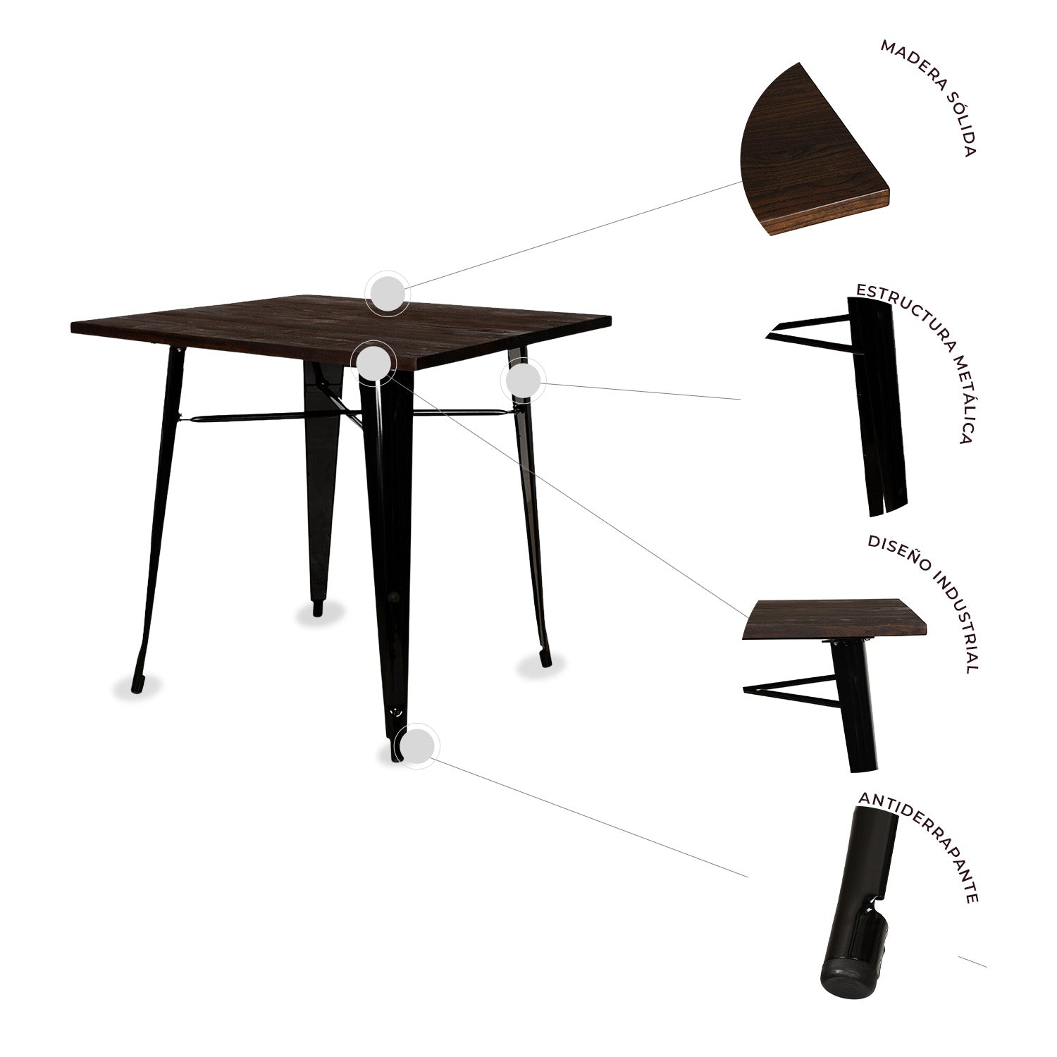 Base de metal con antiderrapantes, con superficie de madera sólida de 23mm en tono nogal