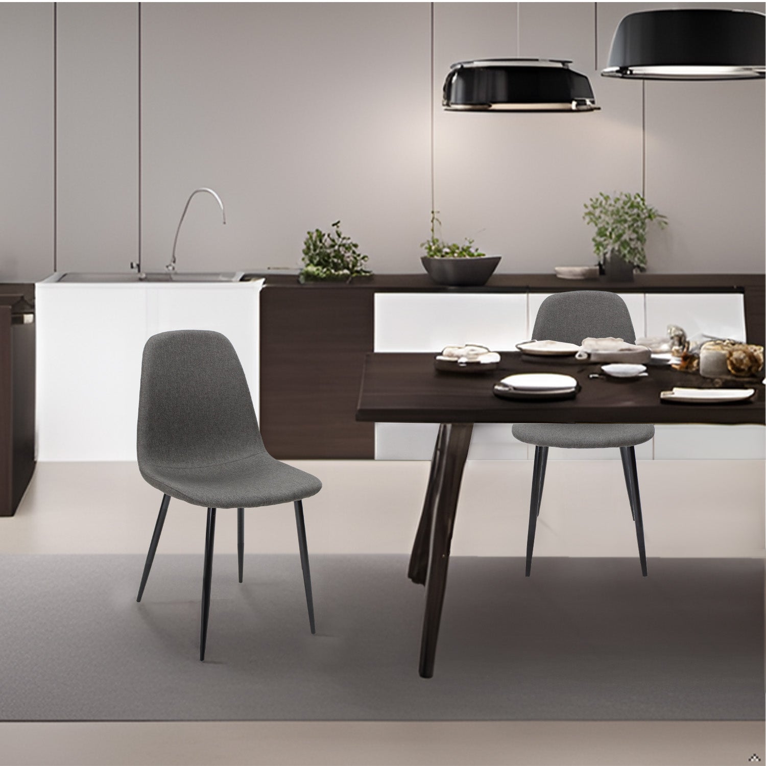 Acabado en vinil, cuenta con un asiento estilizado y una base de cuatro postes de metal