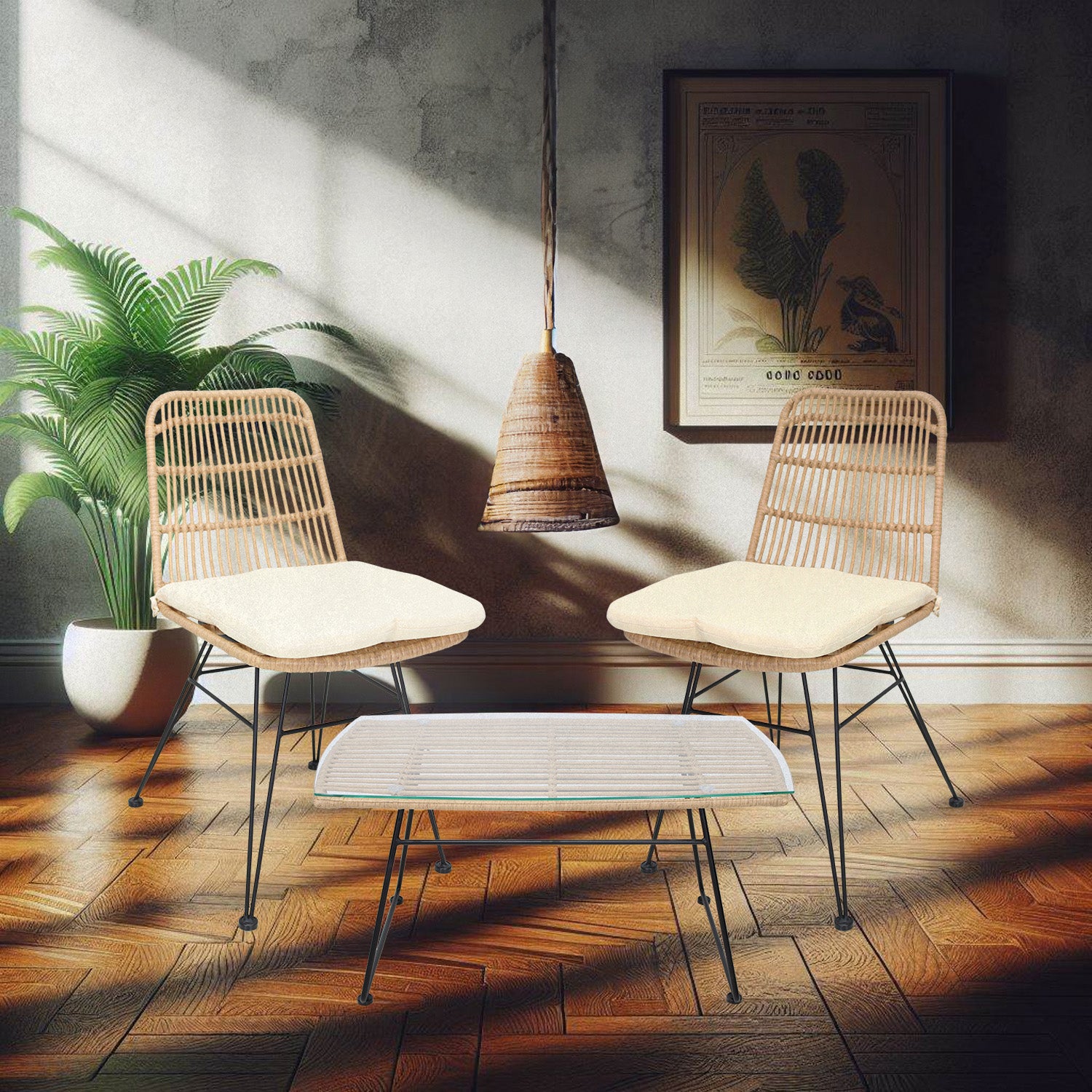 Silla de exterior con base metálica 5/8", antiderrapantes y asiento de rattan sintético impermeable