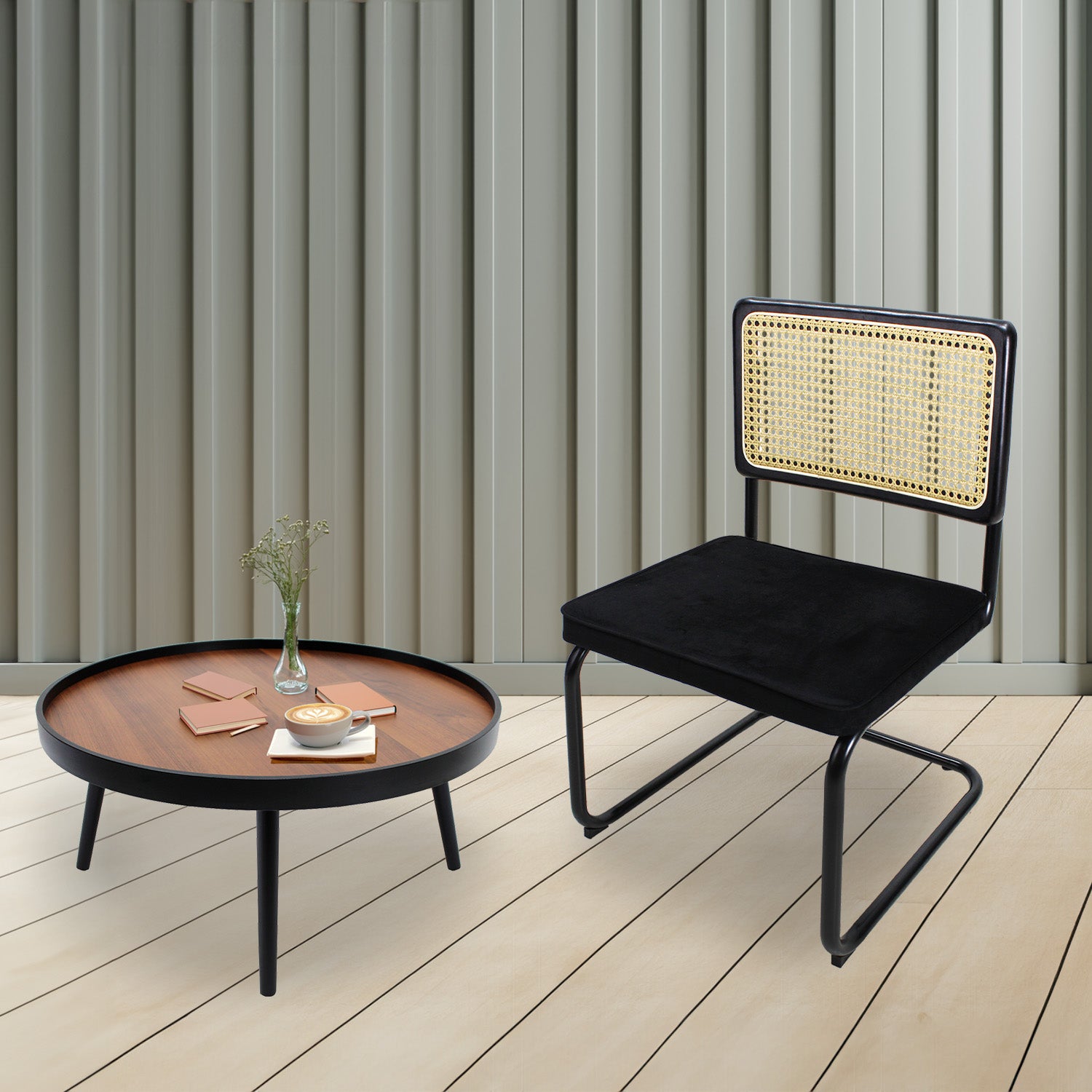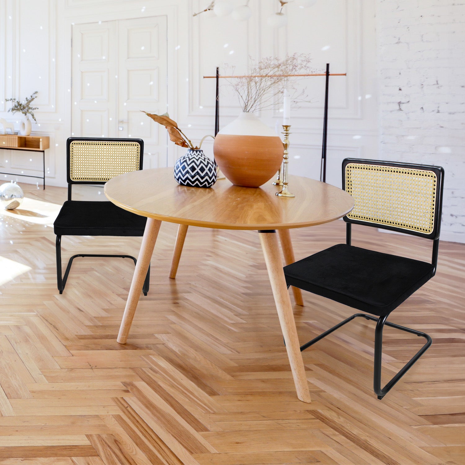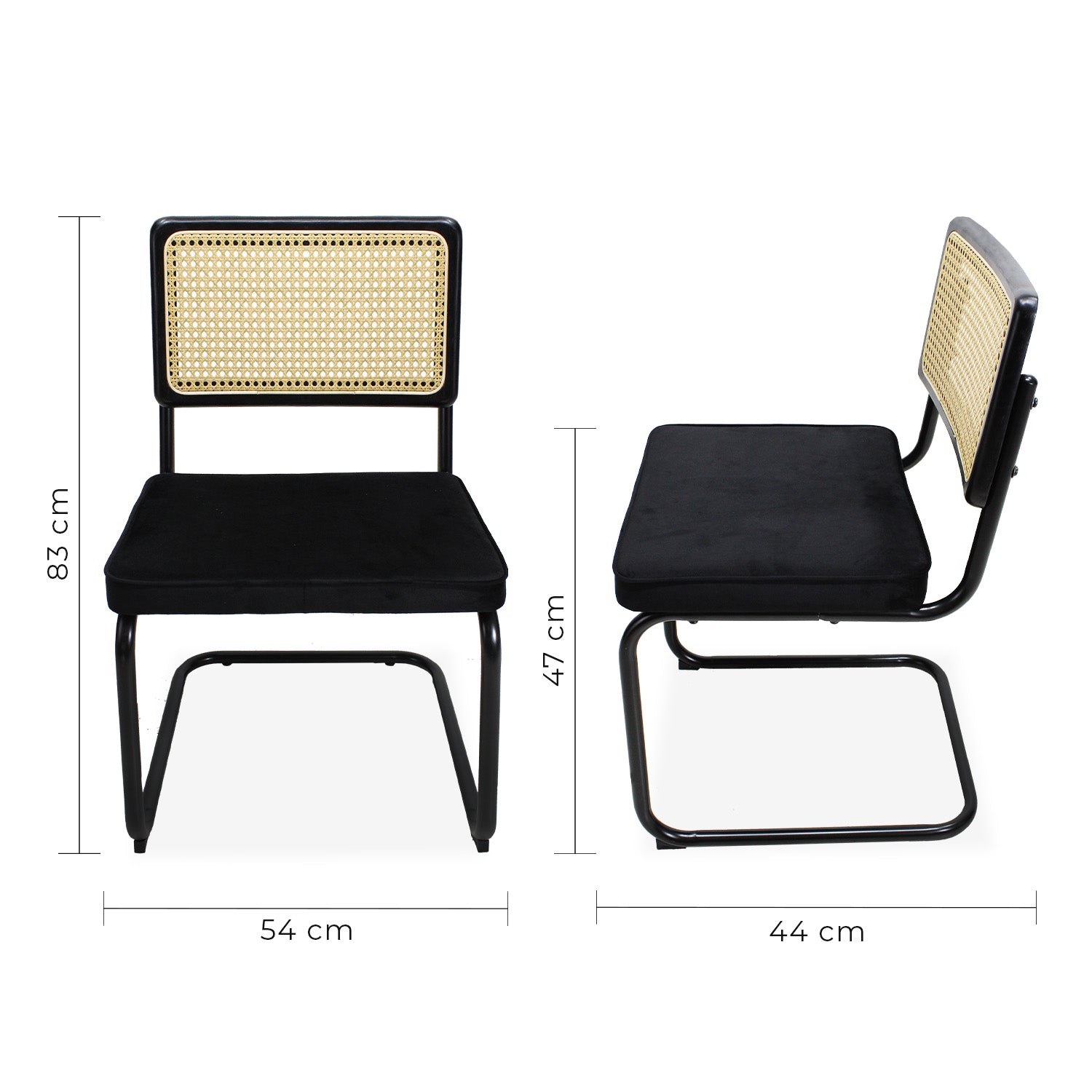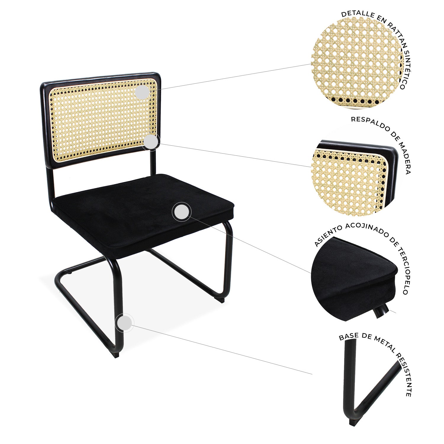 Estructura de madera, asiento acojinado y respaldo de rattan