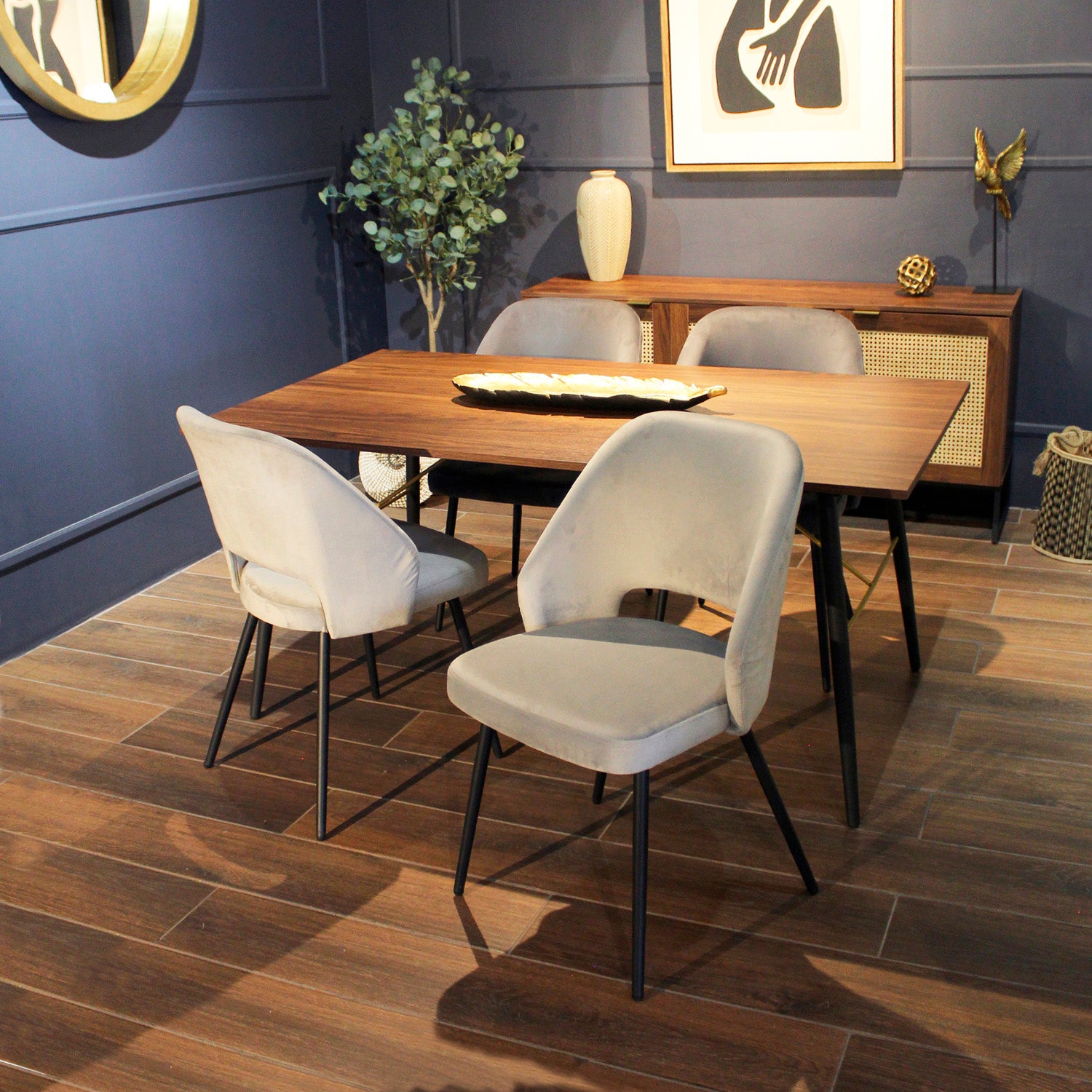 Respaldo y asiento estilizado forrado en tela con base metálica