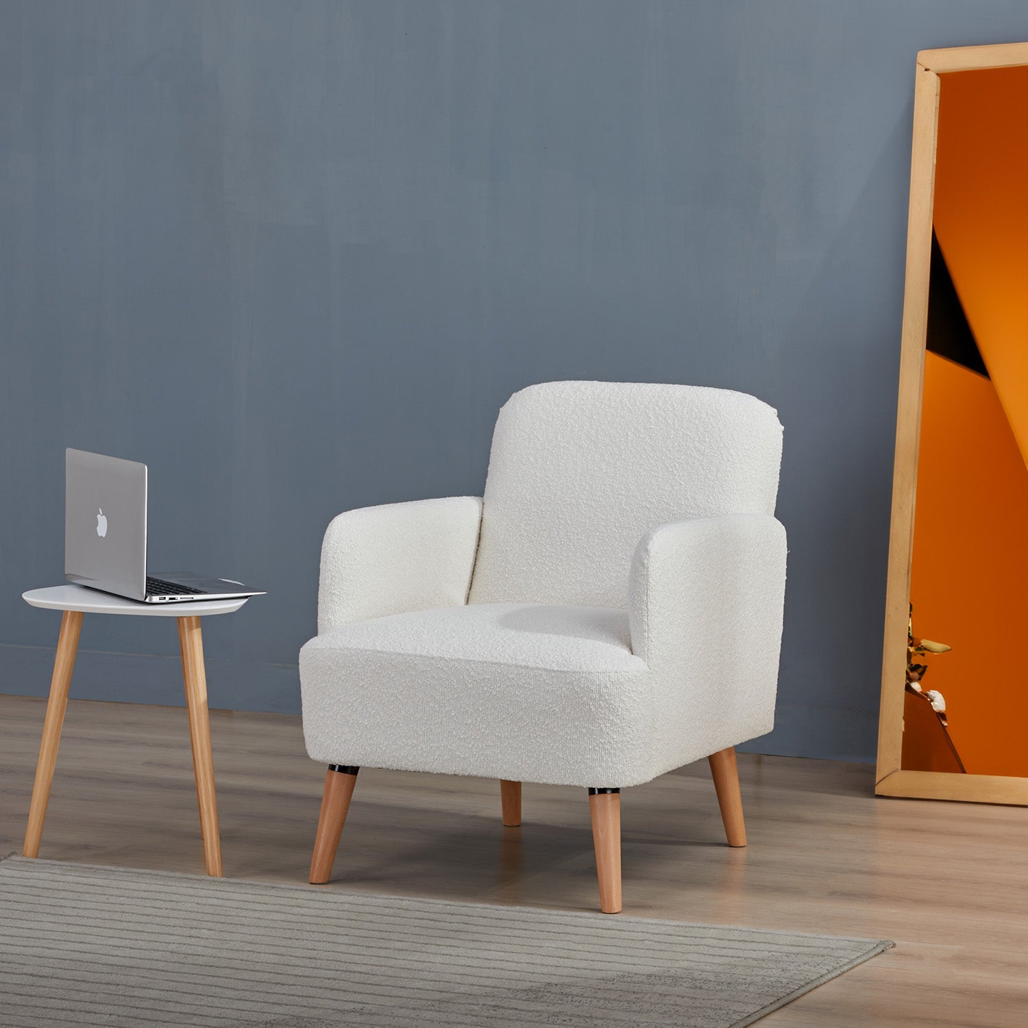 Estructura forrada en tela; respaldo, descansabrazos y asiento acojinado, base de madera maciza